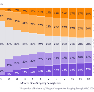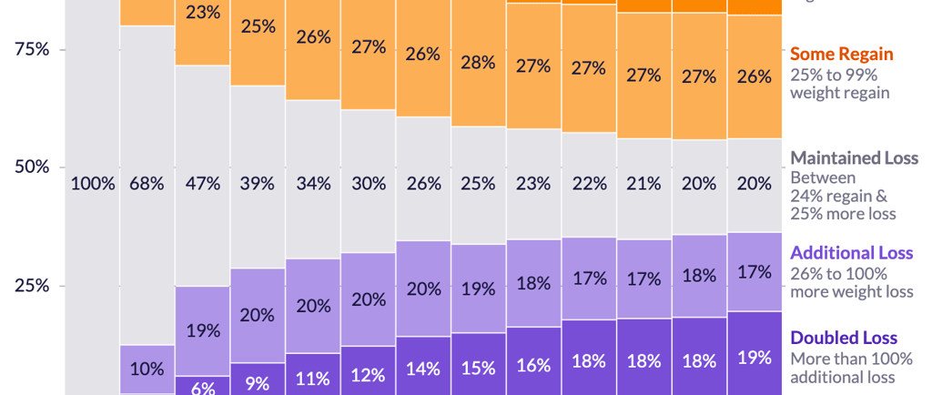 Недавнее исследование Epic Research изучило долгосрочные эффекты препаратов для снижения веса семаглутида и лираглутида, выявив обнадеживающие результаты для многих пациентов даже после прекращения приема препаратов. Через год после завершения терапии 56,2% пользователей семаглутида и 55,7% пользователей лираглутида смогли сохранить сниженный вес или продолжали худеть.